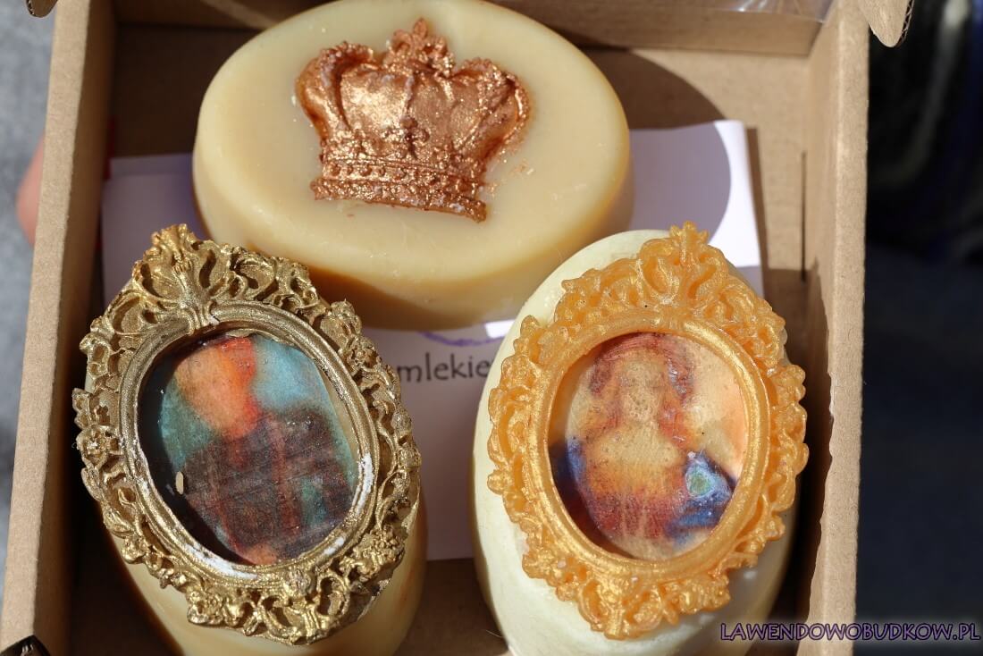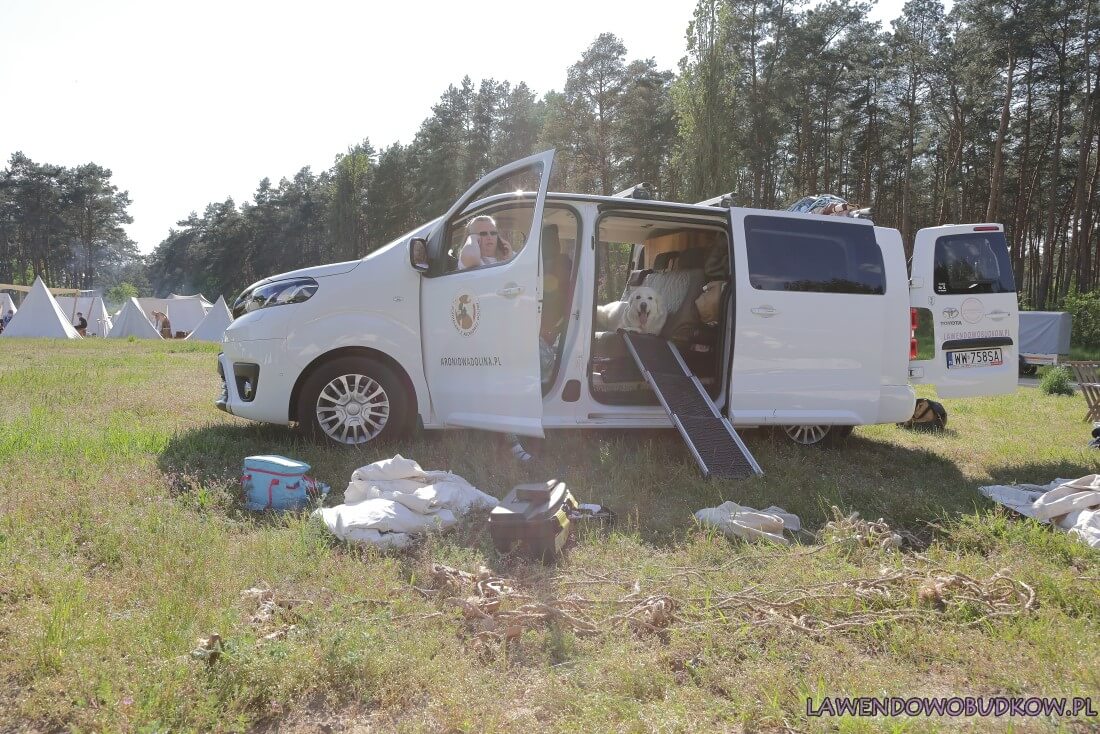Na naszym kramie LAWENDOWO BUDKÓW prezentowaliśmy naturalne rzemieślnicze kosmetyki: mydła, masła do ciała, świece do masażu, sole kąpielowe… Opowiadaliśmy o tym, jak ludzie higienę w średniowieczu utrzymywali. Można było u nas umyć ręce szarym mydłem potasowym z ługu z popiołu drzewnego i smalcu z gęsi o właściwościach pielęgnujących i łagodzących, które jest idealne dla każdej cery. A kramu pilnowała nasza kochana podhalanka PIWONIA Aroniowa Dolina (FCI). Niestety, impreza ją troszeczkę onieśmieliła i z saxona niezbyt często wychodziła. Aczkolwiek z innymi pieskami z daleka się witała i ogonkiem im machała