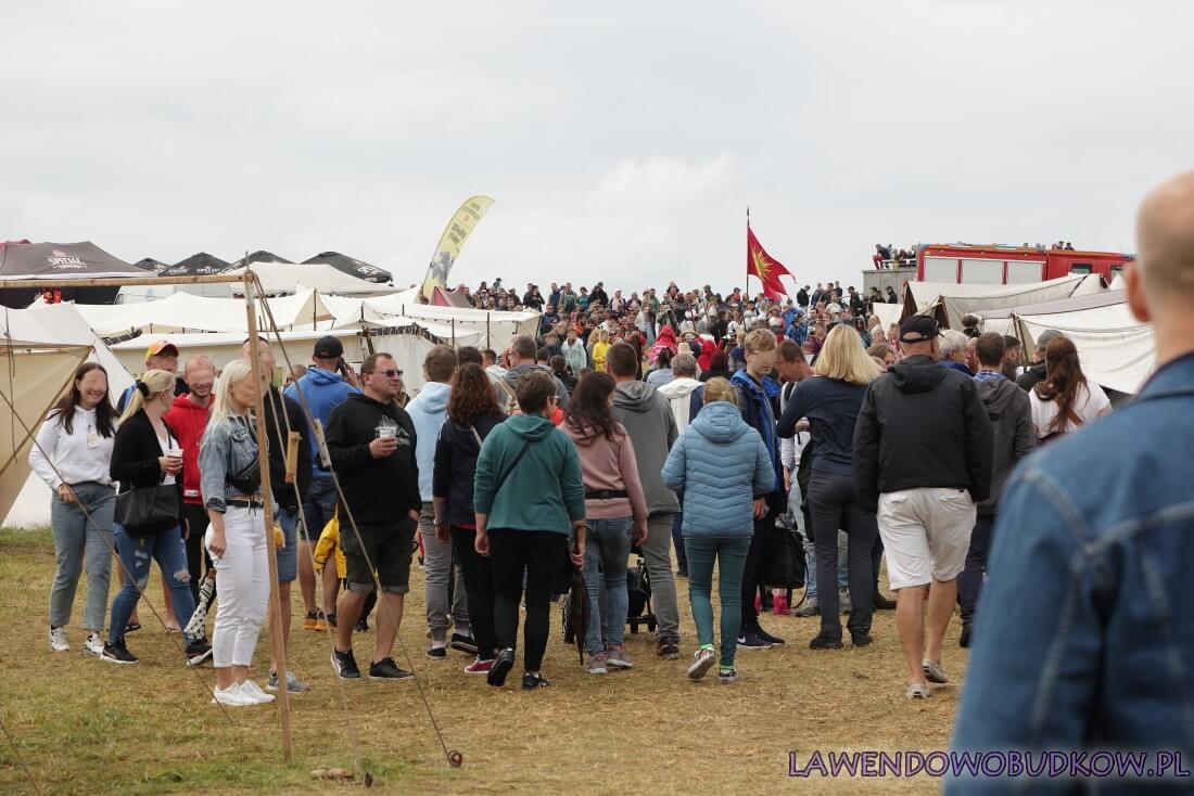 Turyści jak zawsze dopisali i Damy Dworu, rycerzy, rzemieślników… podziwiali. Na Grunwald z nami PIWONIA Aroniowa Dolina (FCI) się wybrała i saxona na budę zaanektowała. Wychodzić za bardzo w ciągu dnia z niej nie chciała, może dlatego, że przy arenie turniejowej rozbici byliśmy i trochę hałasu było a młode nasze dziecię podhalańskie za ciszą tęskniło. Chcieliśmy ją trochę z tego typu imprezami zsocjalizować – na spacerek z nami chętnie chodziła ale nosa sama z namiotu raczej nie wyściubiła. A że tylko we dwoje byliśmy to jej zdjęć nie robiliśmy. Najbardziej jej się podobał Kopiec Jagiełły w Łodwigowie – widok stąd jest co się zowie, zwłaszcza gdy nad nami słońce świeciło a pole Bitwy pod Grunwaldem ciemnością deszczową spowite było.